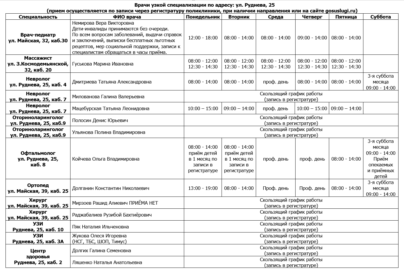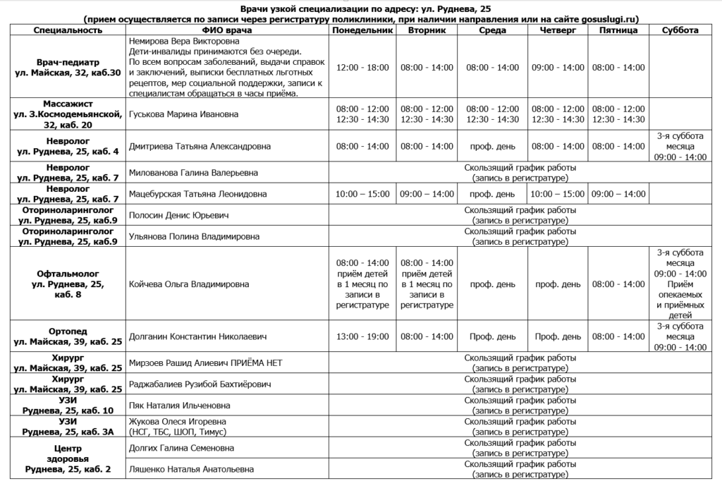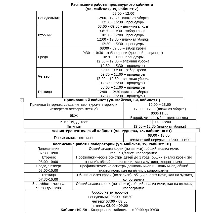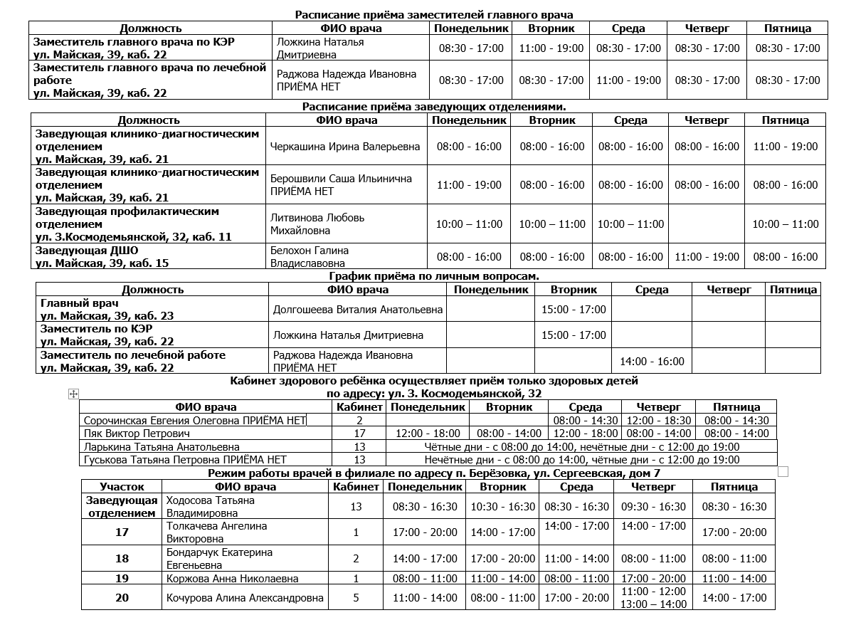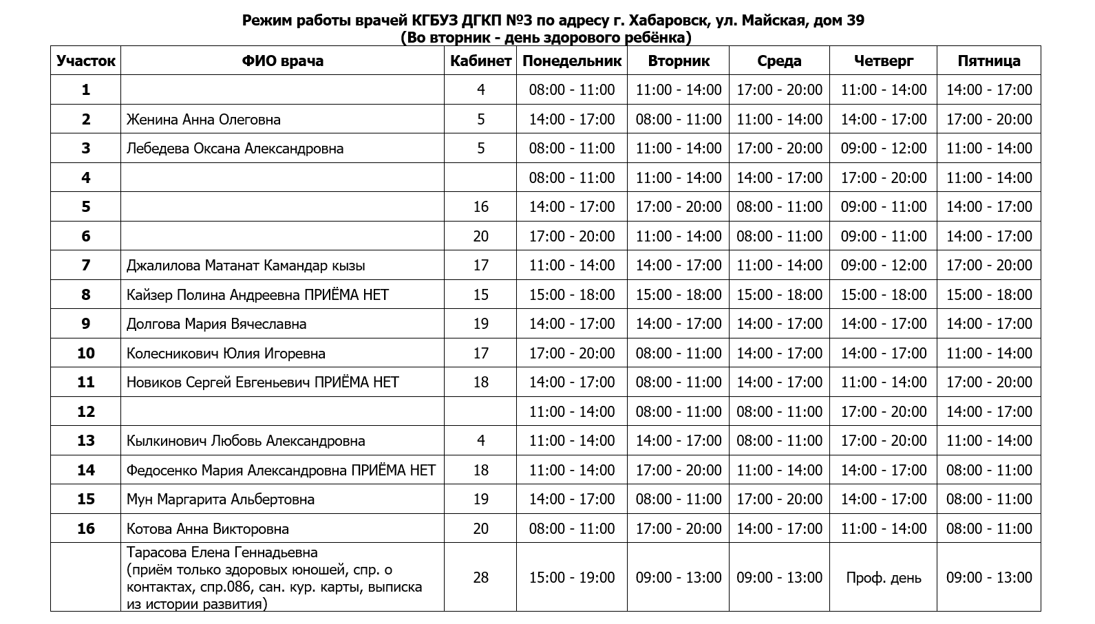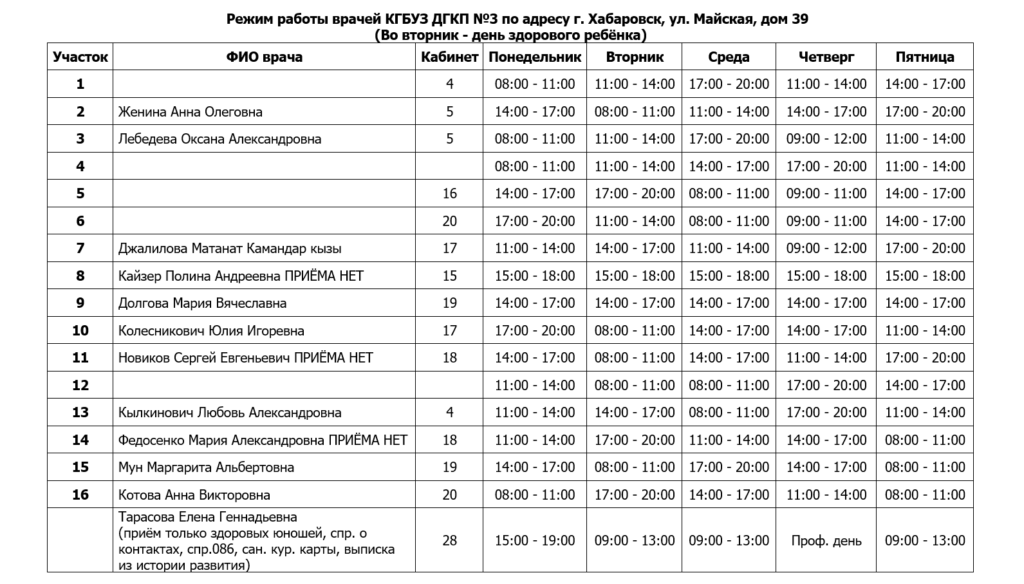Режим работы врачей КГБУЗ ДГКП №3 по адресу г. Хабаровск, ул. Майская, дом 39